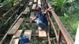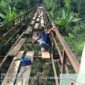 Kakon Banjar Agung Udik Bersama Warga Bergotong Royong Perbaiki Jembatan Gantung