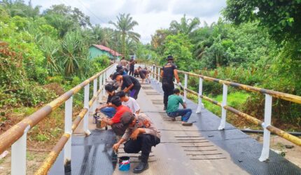 SIAK BKO Polda Riau Bersama Polsek Koto Gasib: Hari Keempat, Gotong Royong Renovasi Jembatan Sungai Penyengat Terus Dikebut
