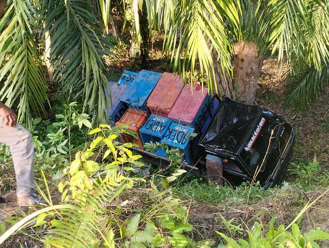 Diduga Ngantuk, Mobil Pickup Kecelakaan Tunggal di Desa Babah Dua, Kecamatan Tadu Raya, Nagan Raya