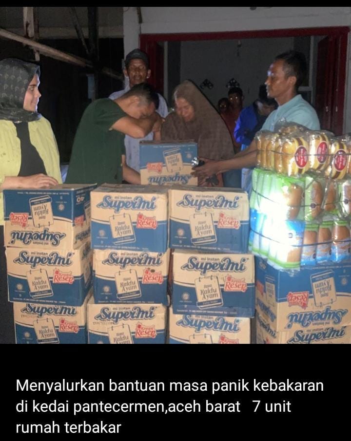 “Keseluruhannya yang terbakar ada sembilan, tiga unit bangunan berbentuk toko, tiga unit berbentuk rumah, tiganya unit lagi hanya terbakar sebagian bangunan,dan kesembilannya ini berpusat di pasar Desa Pante Ceureumen”