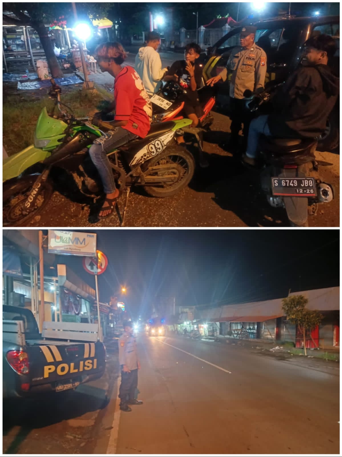 Giat patroli dipimpin Aiptu Tasmirin dan beberapa personil Polsek Ngimbang yang dilaksanakan pada malam hari untuk mensapa pemuda pemudi yang sedang melaksanakan kegiatan nongkrong di Warkop – warkop untuk selalu berhati – hati dan waspada atas perkelaian antar pemuda dan jauhi minum minuman keras serta narkoba guna memancing keributan