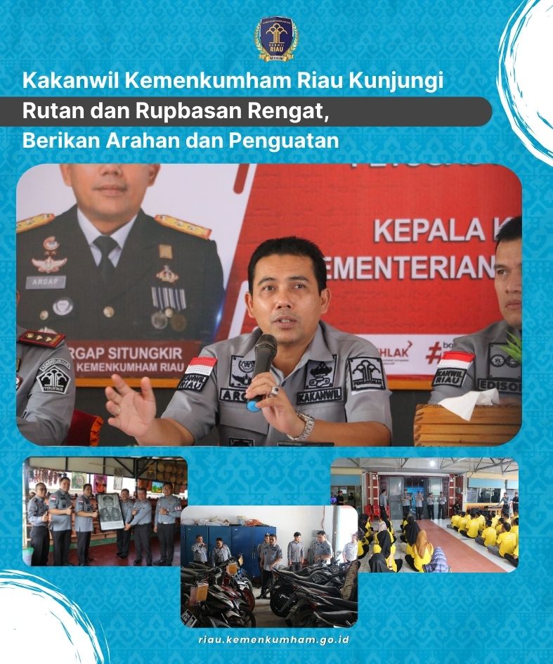 Lebih lanjut, Kakanwil juga mengapresiasi kinerja Rutan dan Rupbasan Rengat dan mengharapkan untuk terus meningkatkan kinerja hingga meraih predikat Wilayah Bebas dari Korupsi (WBK) dan Wilayah Birokrasi Bersih dan Melayani (WBBM).
