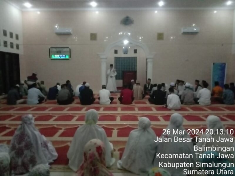 Tanah Jawa, Simalungun – Dalam menjaga keamanan dan ketertiban menjelang Sholat Tarawih, Polsek Tanah Jawa Polres Simalungun, dibawah pimpinan KOMPOL Manson Nainggolan, SH.M.Si, menggelar pengamanan di Masjid Uswatun Hasanah, Nagori Balimbingan, Kecamatan Tanah Jawa, Kabupaten Simalungun, pada Selasa malam, 26 Maret 2024. Pengamanan ini dilakukan mulai pukul 20.00 WIB hingga seluruh rangkaian ibadah selesai.