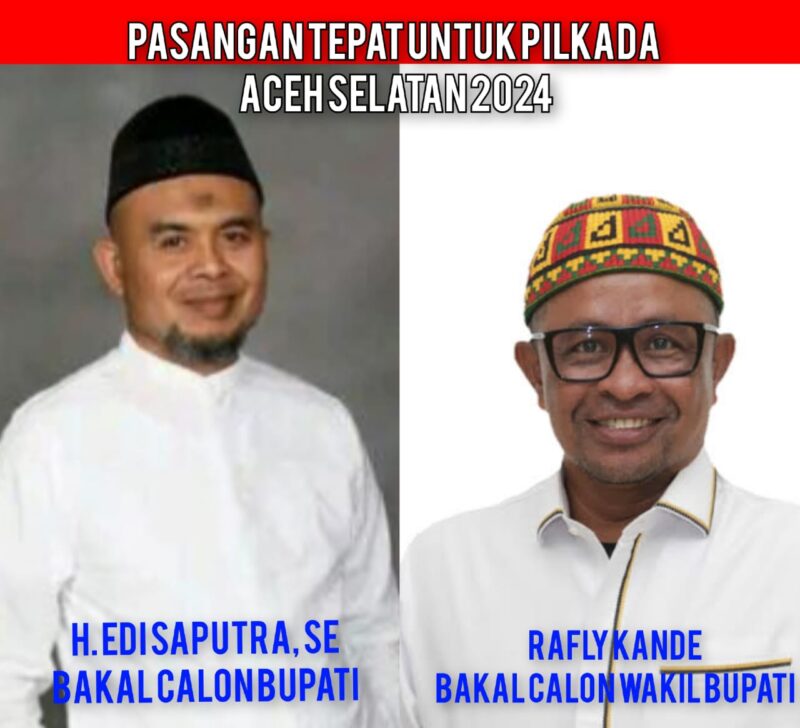 Banda Aceh – Menjelang Pilkada 2024, Bakal Calon Bupati Aceh Selatan asal Labuhanhaji Raya H Edi Saputra SE disarankan untuk mengambil dan memilih Rafly Kande untuk pasangannya sebagai calon wakil bupati Aceh Selatan.