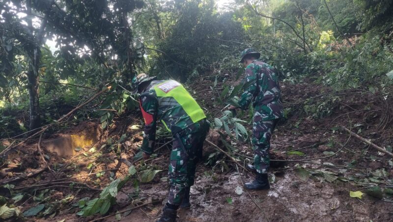 “Babinsa Koramil 09/ Putri Betung terjun langsung mengurai tanah longsor yang bercampur lumpur dan pohon yang tumbang dengan menggunakan alat seadanya, sebelum alat berat diterjunkan ke lokasi kejadian,” ucapnya.