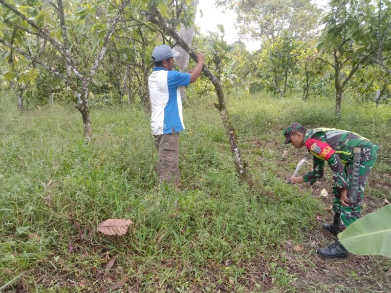 GAYO LUES – Babinsa Koramil 09/Putri betung ikut membantu Masyarakat dalam Rangka perawatan kebun coklat(Kakao) di desa jerat onom kecamatan putri betung kabupaten gayo lues