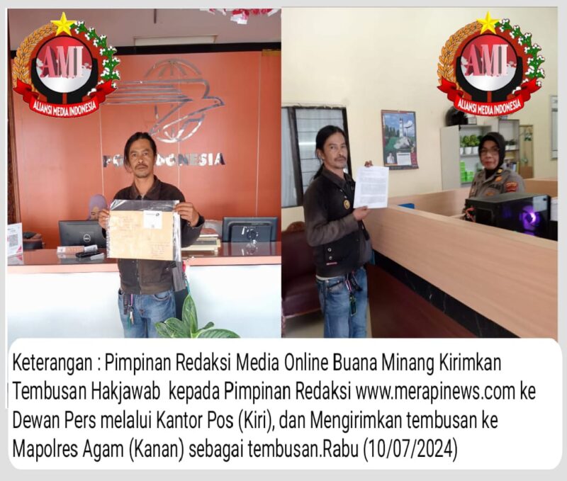 Hak jawab tersebut dikirimkan melalui PT Pos Indonesia dan melalui elektronik, sementara tembusan untuk Kapolresta Bukittinggi diterima oleh Iptu Ami, dan dibubuhi tandatangan tanda terima surat pada hari ini (Rabu, 10/7).