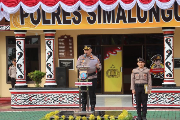 Dalam sambutannya, Kapolres Simalungun AKBP Choky Sentosa Meliala mengingatkan pentingnya dedikasi dan integritas dalam menjalankan tugas untuk menjaga keamanan dan ketertiban di wilayah Simalungun. Beliau menyampaikan, “Pertama-tama marilah kita panjatkan puji dan syukur kehadirat Tuhan Yang Maha Esa. Atas berkat dan rahmat serta karunia-Nya, pada hari yang berbahagia ini kita masih diberikan kesehatan dan kesempatan untuk mengikuti acara serah terima jabatan.”