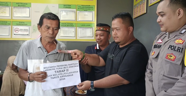 Bantuan Langsung Tunai (BLT) kepada MS ini di serahkan oleh salah satu perangkat desa dengan di dampingi pendamping desa, dikawal Bhabinkamtibmas dan Babinsa dengan sistim datang langsung ke rumah bagi warga dalam kondisi tidak sehat atau telah lansia.