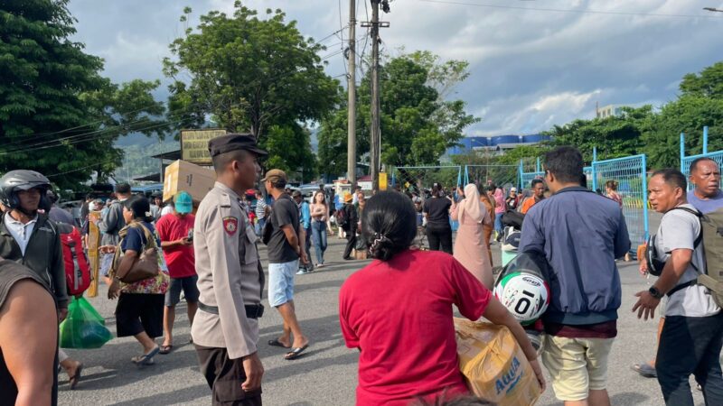 Kedatangan Kapal KM Tilongkabila di Pelabuhan Samudera Bitung, mendapat Pengamanan dari Personil Polsek KPS Polres Bitung yang di pimpin langsung Kapolsek KPS AKP Julio Jagratara Tampoi, SH