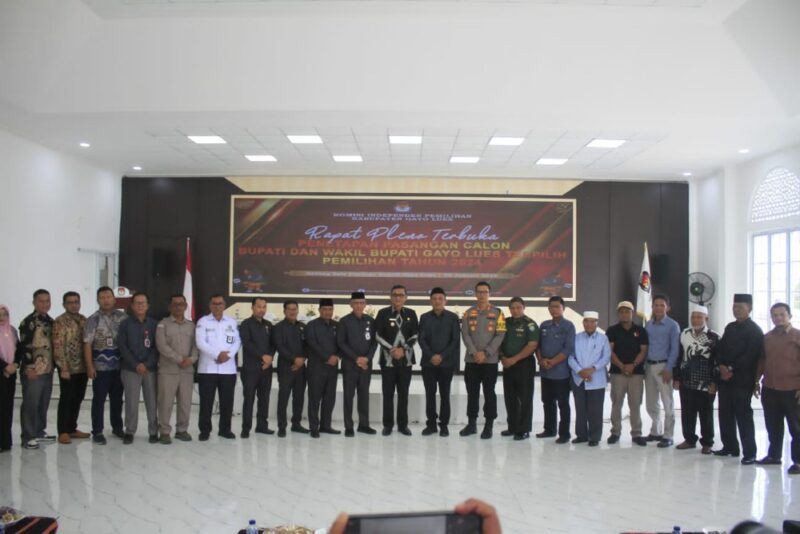 Penetapan tersebut diumumkan saat rapat pleno terbuka penetapan pasangan calon Bupati dan Wakil Bupati Gayo Lues terpilih pemilihan tahun 2024.