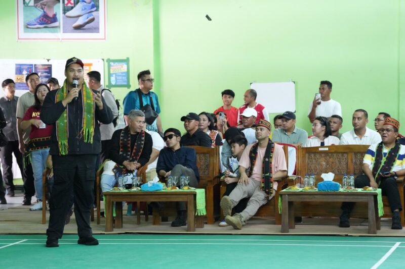 Manggarai Barat: Menteri Pemuda dan Olahraga Republik Indonesia (Menpora RI) Dito Ariotedjo memberikan motivasi kepada peserta Ibunda Badminton Championship di GOR Ibunda Labuan Bajo, Manggarai Barat, Nusa Tenggara Timur (NTT), Minggu (16/2).