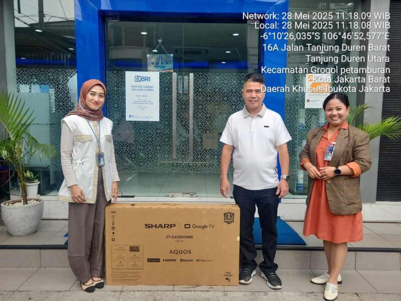 Jakarta| PT Bank Rakyat Indonesia (Persero) Tbk atau BRI melalui Kantor Cabang Jakarta Tanjung Duren menyerahkan hadiah kepada nasabah pemenang Undian Simpedes Periode September 2024 – Februari 2025 sebagai bentuk apresiasi atas loyalitas mereka terhadap produk tabungan Simpedes.