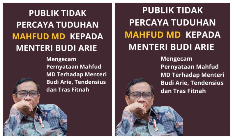 kami dapat menyimpulkan bahwa Mahfud MD hanya untuk mem-framming narasi yang tidak tepat dengan menyebut nama Eks Kominfo Budi Arie,