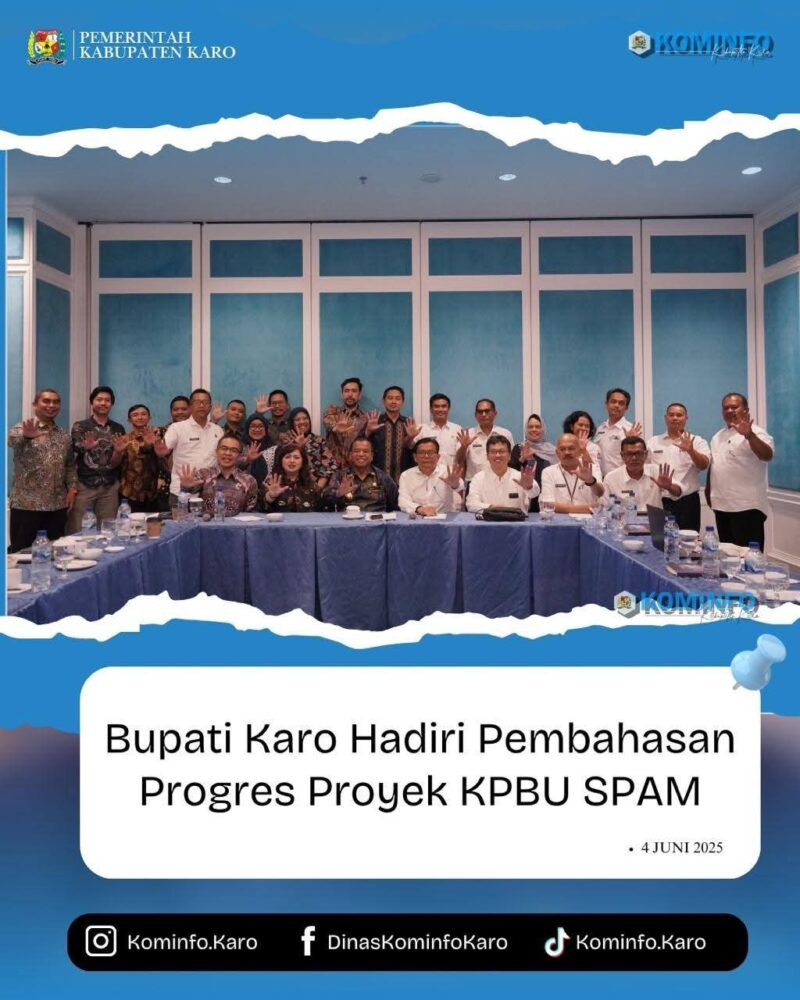 Bupati Karo, Brigjen Pol (Purn) DR. dr. Antonius Ginting, Sp.OG, M.Kes, hadiri rapat pembahasan progres dan tindak lanjut pelaksanaan Proyek Kerja Sama Pemerintah dengan Badan Usaha (KPBU) Sistem Penyediaan Air Minum (SPAM) Kabupaten Karo.