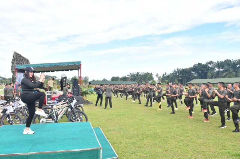 Pancur Batu | Pangdam I/Bukit Barisan Mayjen TNI Rio Firdianto didampingi Pejabat Utama Kodam I/Bukit Barisan melaksanakan olahraga bersama prajurit Resimen Arhanud 2/SSM di Mako Menarhanud 2/SSM, Pancur Batu, Kab. Deli Serdang pada Jumat (11/7). Kegiatan olahraga diawali dengan Pangdam I/BB dan rombongan bersepeda Dari Makodam menuju Mako Menarhanud 2/SSM.