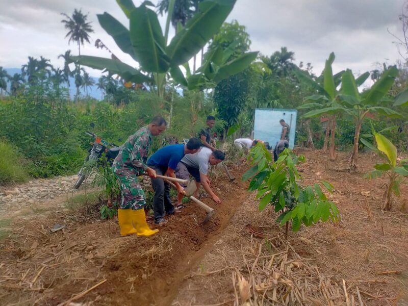 Langkah tersebut merupakan kelanjutan dari pemasangan bak penampungan air yang telah dilakukan sebelumnya. Penggalian jalur pipanisasi kini digarap bersama oleh personel TNI dan warga desa dalam suasana penuh kekompakan. Instalasi ini akan menyalurkan air bersih dari sumber mata air pegunungan menuju bak penampungan, kemudian diteruskan ke rumah-rumah warga.