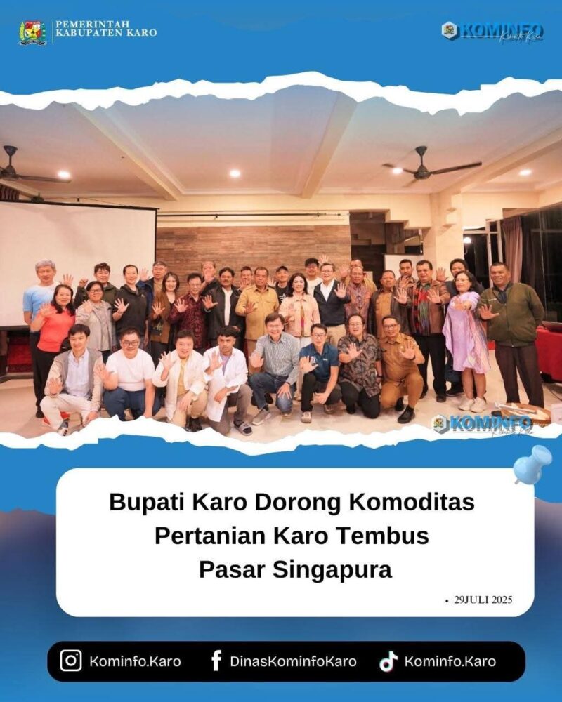 “Singapura menargetkan hanya 30% pemenuhan pangan dari dalam negeri pada 2030,ini menjadi peluang bagi Karo untuk mengambil bagian dalam pemenuhan kebutuhan pangan mereka,” ujar Bupati.