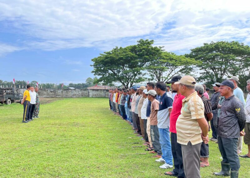 Forum Komunikasi Pimpinan kecamatan (Forkopimcam) Seunagan Timur bersama Keuchik Gampong, aparatur Gampong, imuem mukim, laksanakan Gotong royong di lapangan bola kaki Alue kala dalam rangka persiapan pelaksanaan Upacara Bendera Merah putih peringatan kemerdekaan Republik Indonesia yang ke 80 tahun 2025 di kecamatan Seunagan Timur kabupaten Nagan Raya Provinsi Aceh. Rabu.13 /8/2025.