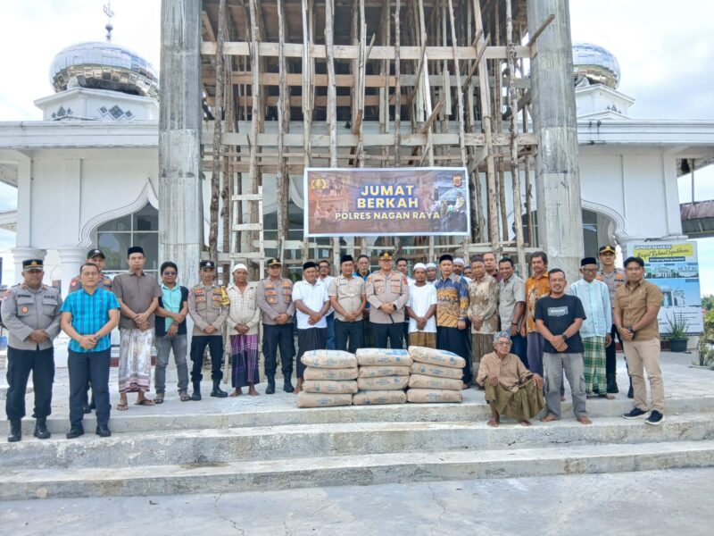 Nagan Raya : Jum’at Berkah Kapolres Nagan Raya kembali melaksanakan program Jum’at Berkah dengan membagikan bantuan semen untuk Pembangunan Masjid Rahmad Syaikuna Desa Blang Seumot Kecamatan Beutong Kabupaten setempat.