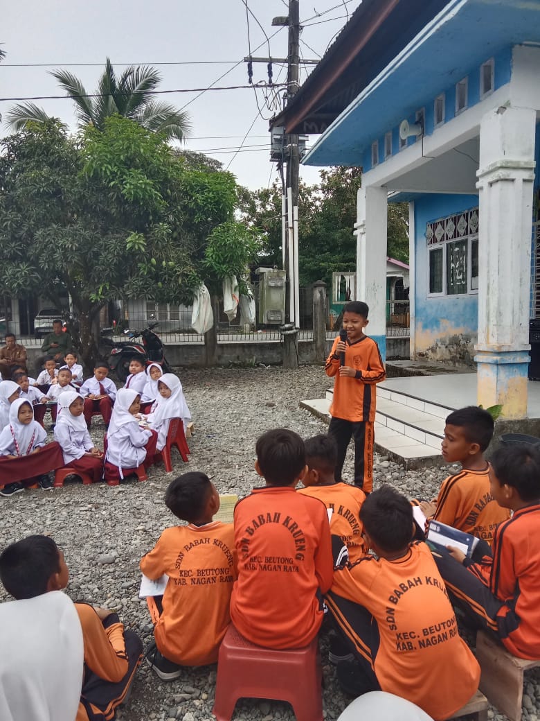 Suka Makmue : Sekolah Dasar Negeri ( SDN ) Babah Krueng Kecamatan Beutong Kabupaten Nagan Raya Provinsi Aceh melaksanakan kegiatan Literasi membaca untuk seluruh Siswa dari Kelas 1 Sampai Kelas 6. Dan Kegiatan tersebut berlangsung di halaman Sekolah SDN Babah Krueng. Selasa,09 September 2025