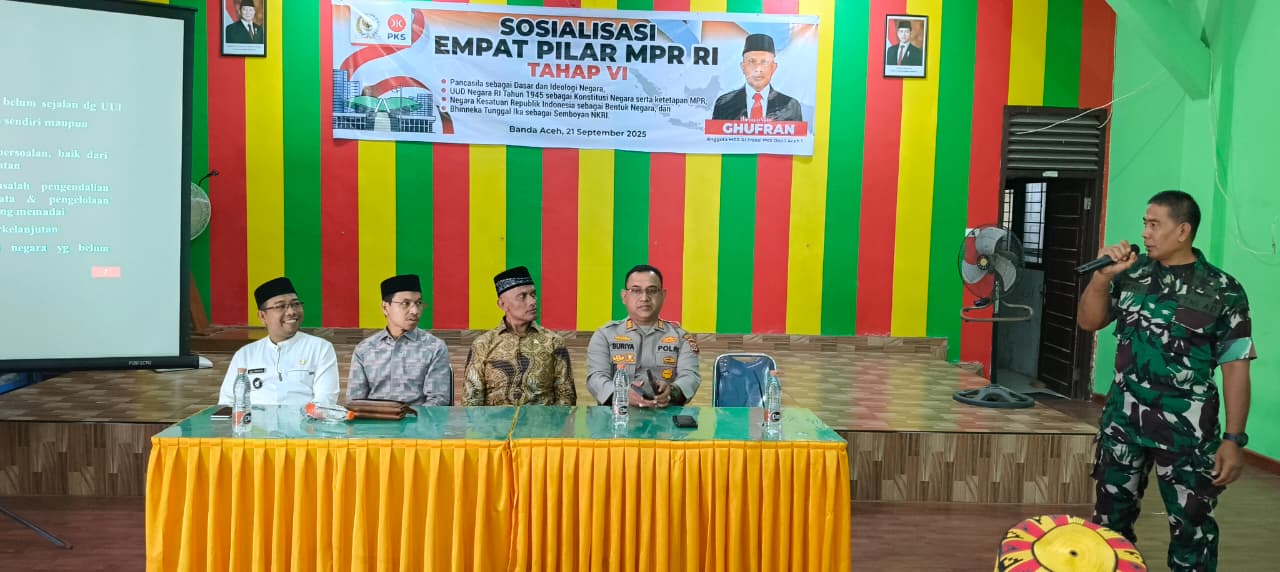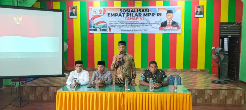 BANDA ACEH, WASPADA INDONESIA – Dalam upaya memperkuat nilai-nilai kebangsaan dan memupuk semangat persatuan di tengah masyarakat, Anggota Majelis Permusyawaratan Rakyat Republik Indonesia (MPR RI) dari Fraksi Partai Keadilan Sejahtera (PKS), Ghufran, menyelenggarakan kegiatan Sosialisasi Empat Pilar MPR RI ke-VI di Aula Serba Guna Gampong Kota Baru, Kota Banda Aceh, pada Minggu, 21 September 2025. Kegiatan ini merupakan bagian dari program rutin MPR RI dalam mendekatkan prinsip-prinsip dasar kehidupan berbangsa dan bernegara kepada masyarakat di seluruh Indonesia.