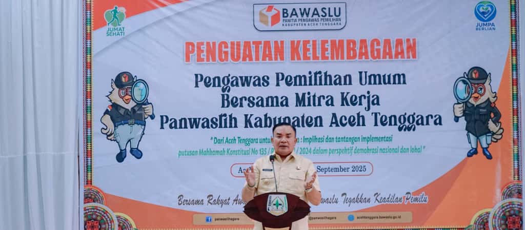 Kutacane , Waspada Indonesia –  Menjelang pelaksanaan Pemilihan Kepala Desa (Pilkades) Serentak 2026, Bupati Aceh Tenggara, H. M. Salim Fakhry, menghadiri seminar Penguatan Kelembagaan Pengawas Pemilu yang digelar bersama mitra kerja Panitia Pengawas Pemilihan (Panwaslih) Kabupaten Aceh Tenggara. Kegiatan ini berlangsung di Oproom Sekretariat Daerah, Senin (22/9/2025), dengan mengundang jajaran pemerintah daerah, Panwaslih, serta berbagai pemangku kepentingan lainnya.