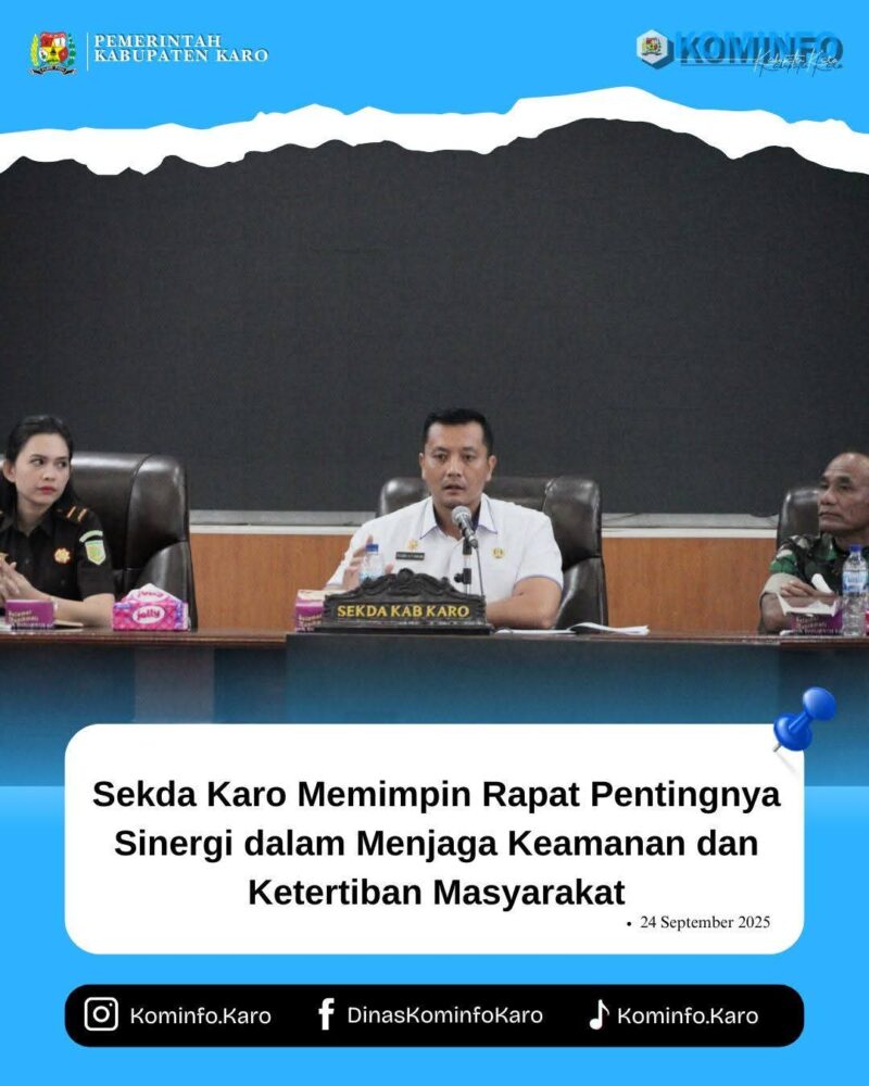 Rapat bersama unsur Forum Koordinasi Pimpinan Daerah (Forkopimda) Kabupaten Karo,digelar di Aula Kantor Bupati Karo,Rabu (25/9/25 )