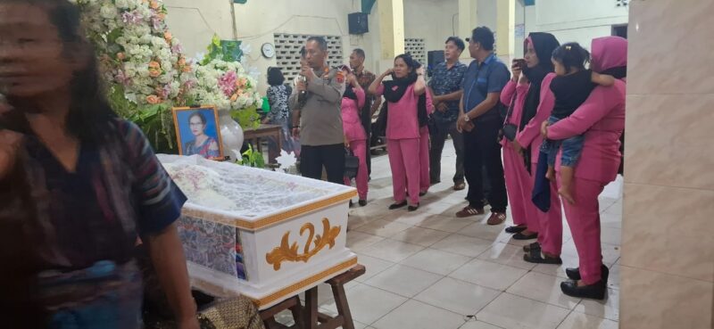BATU BARA — Kapolsek Lima Puluh AKP Salomo Sagala bersama personilnya melayat di tempat ibu mertua Aipda Selamat orang tua dari ibu Marta Panjahitan, di Kota Tanjung Balai. Selasa (07/10/2025).