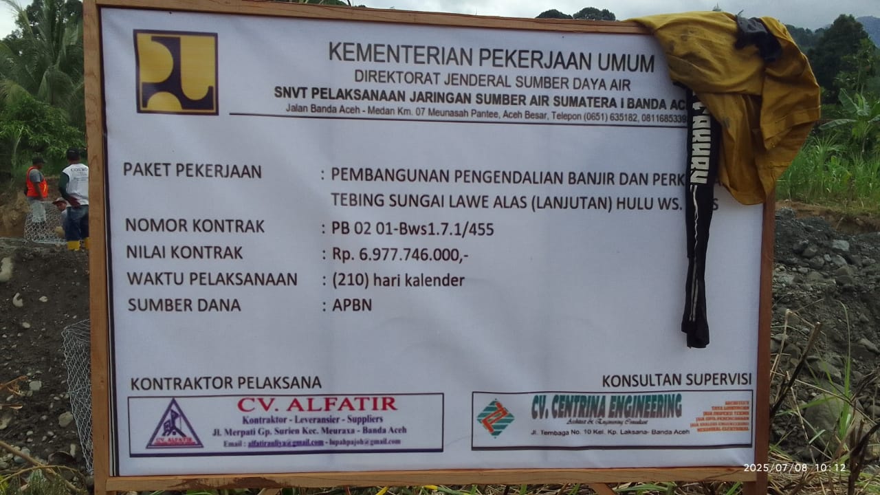 Proyek yang dikerjakan oleh CV. ALFATIR selaku kontraktor pelaksana dan CV. Centriva Engineering sebagai konsultan supervisi ini menjadi pusat kritik dan kecaman publik setelah Bupati LIRA Aceh Tenggara, Fazriansyah, menyampaikan bahwa pihaknya memiliki rekaman video serta dokumentasi visual proyek yang mengarah pada dugaan kuat pengurangan volume pekerjaan—terutama di bagian struktur pondasi dan pemasangan bronjong.