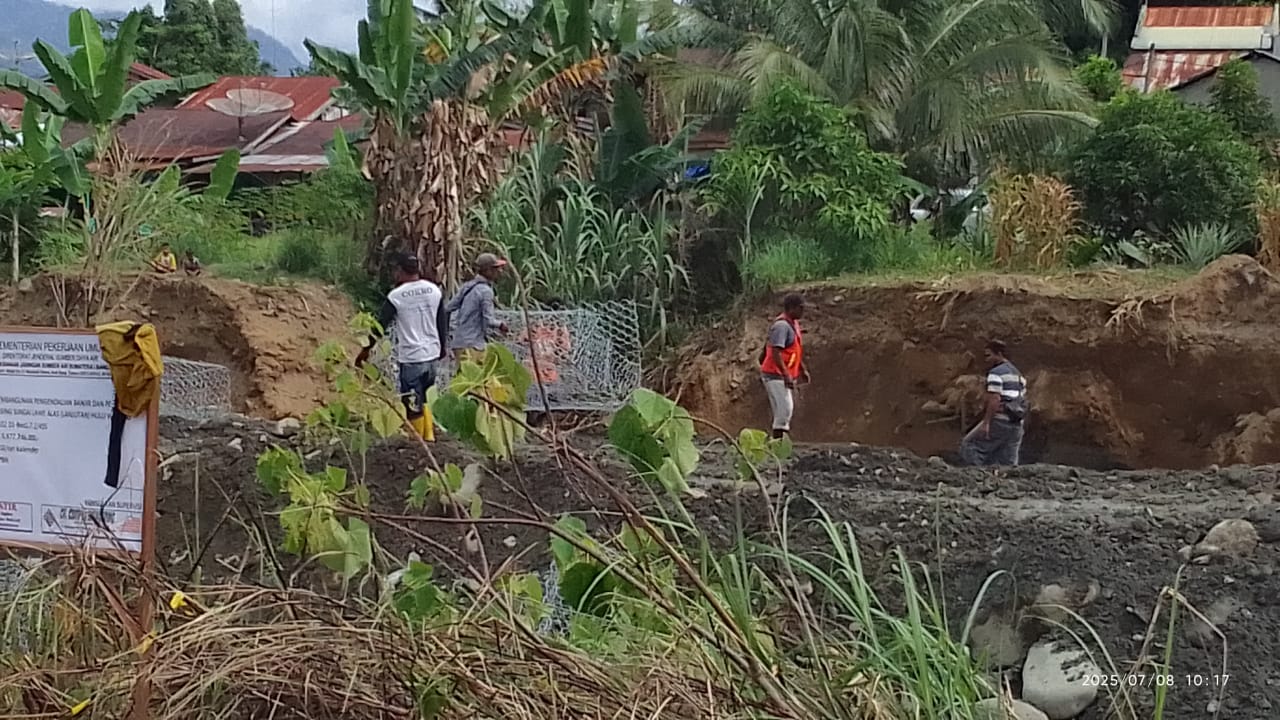 Lebih jauh, dalam salah satu gambar tampak secara jelas dinding bronjong yang disusun bukan di atas pondasi beton bertulang melainkan langsung di atas urukan batu kali. Praktik semacam ini sangat membahayakan ketahanan konstruksi dalam jangka panjang, terlebih fungsi utama dari proyek ini adalah menahan erosi sungai dan mengendalikan arus banjir. Ketidakhadiran pengawasan lapangan secara ketat dari konsultan supervisi makin membuka ruang spekulasi bahwa proyek ini diduga telah masuk ke dalam praktik “main mata”.