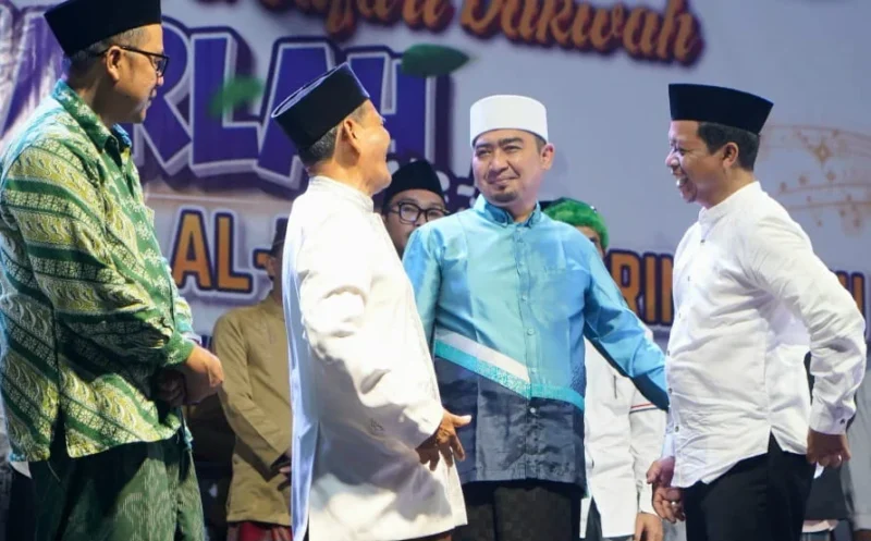 PRINGSEWU – Bupati Pringsewu Riyanto Pamungkas dan Wakil Bupati Pringsewu Umi Laila menghadiri Tabligh Akbar dan Safari Dakwah Harlah ke-5 Pondok Pesantren Nurul Huda Al-Mu’alim di Lapangan Mars, Pringkumpul, Kelurahan Pringsewu Selatan, Kecamatan Pringsewu, Kabupaten Pringsewu, Lampung, Sabtu (11/10/2025) malam.