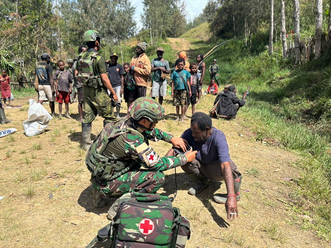 Warga merasa terbantu dengan kehadiran personel TNI yang bukan hanya membawa rasa aman, tetapi juga solusi nyata bagi kebutuhan dasar mereka. “Kami bersyukur sekali ada pengobatan gratis dari tentara. Anak saya sudah lama sakit batuk, hari ini bisa dicek,” ujar Magdalena (37), salah satu warga yang datang untuk berobat.