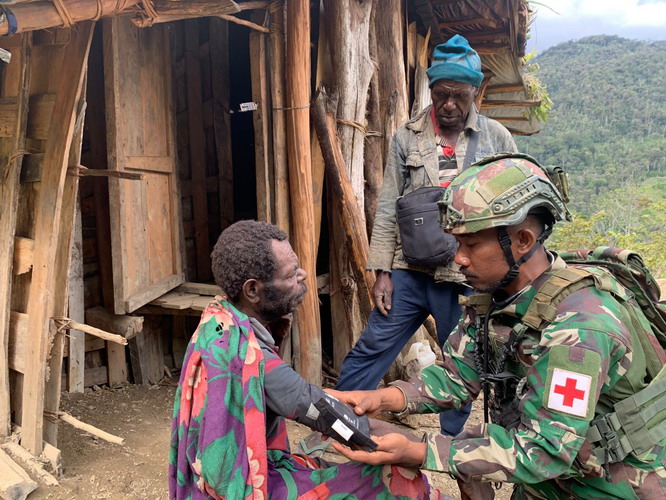 Dengan menyusuri rumah-rumah tradisional berbentuk honai, personel TNI memberikan pemeriksaan kesehatan kepada warga secara langsung. Pendekatan ini tidak hanya meminimalkan kesulitan akses kesehatan di wilayah pegunungan, tetapi juga mempererat hubungan antara TNI dan masyarakat.