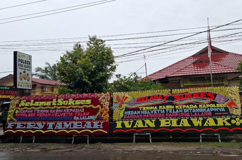 “Terima kasih Polsek Helvetia. Kami merasa lebih aman sekarang,” tulis salah satu warga dalam papan bunga yang terpajang di depan kantor polisi tersebut.