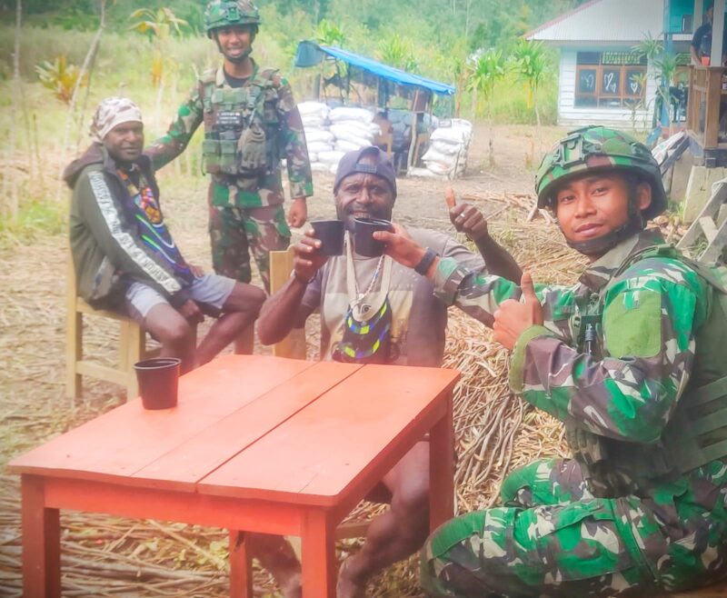 Intan Jaya — Kehangatan hubungan antara aparat dan warga tampak nyata di Kampung Bilai, Distrik Homeyo, Kabupaten Intan Jaya, Papua Tengah. Melalui kegiatan Komunikasi Sosial (Komsos), personel Satgas Pamtas RI-PNG Mobile Yonif 113/Jaya Sakti (JS) dari Pos TK Bilai hadir menyapa warga dan menghidupkan kembali semangat kebersamaan.