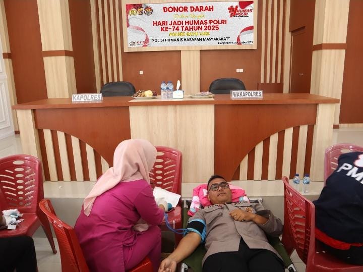 Blangkejeren, 22 Oktober 2025 | Dalam rangka memperingati Hari Jadi Humas Polri ke-74 Tahun 2025, Polres Gayo Lues menggelar kegiatan Donor Darah bertema “Polisi Humanis Harapan Masyarakat” yang berlangsung di Aula Adhi Pradana Polres Gayo Lues.