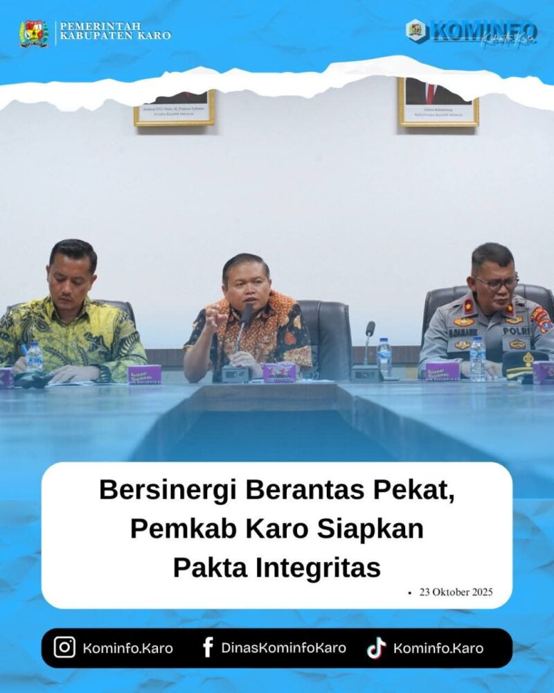 Dilaksanakan di Ruang Rapat Bupati Karo, Kamis (23/10/25). Pemkab Karo melalui Rapat Koordinasi Forkopimda merancang Pakta Integritas tentang Pemberantasan Penyakit Masyarakat (Pekat).