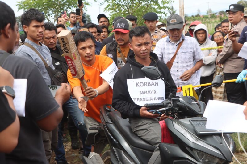Rekonstruksi digelar pada Kamis(23/10/25) dengan memperagakan 27 adegan, di tiga TKP, mulai Rumah Tersangka, perladangan Seledang dan Kedai Kopi depan Indomaret Simpang Empat.