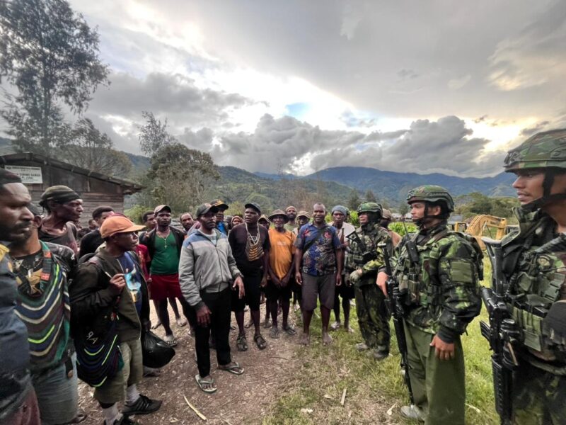Intan Jaya, Papua Tengah — Ada yang tidak biasa di ujung pekan distrik Homeyo, Kabupaten Intan Jaya, Sabtu (25/10/2025). Dua kampung terpencil, Ogeapa dan Ngagemba, mendadak ‘bersaing’ dengan cara yang tak lazim. Bukannya mempertentangkan batas tanah atau hasil bumi, warga kedua kampung justru saling berebut kesempatan menjadi tuan rumah penempatan Satgas Pamtas RI-PNG Mobile Yonif 113/Jaya Sakti, Pos TK Maya.