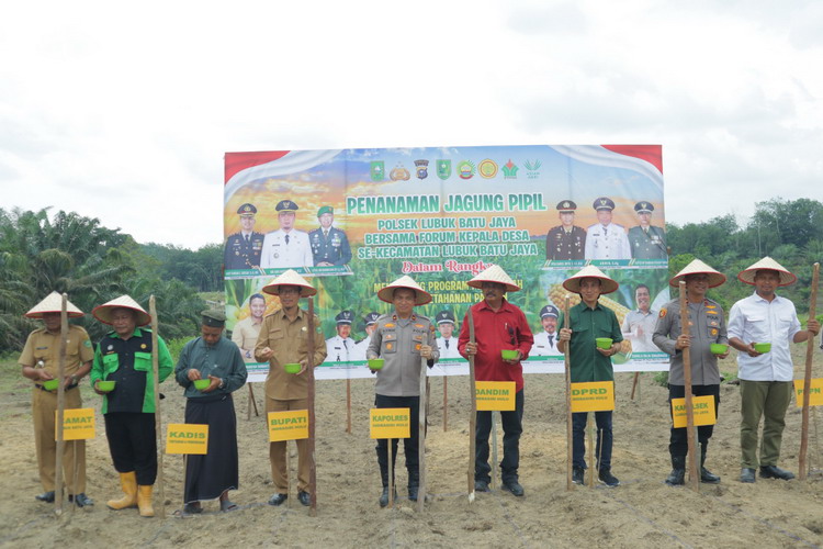 Inhu-Riau – Dalam rangka mendukung program pemerintah menuju Swasembada Pangan Nasional Tahun 2025, Polsek Lubuk Batu Jaya bersama Pemerintah Kabupaten Indragiri Hulu melaksanakan Program Nasional Penanaman Jagung Pipil Serentak Kuartal IV di lahan Tanah Kas Desa (TKD) Sungai Beras-Beras Hilir, Kecamatan Lubuk Batu Jaya, Kab. Inhu. Senin (27/10/2025).