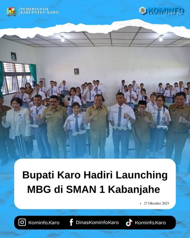 Pemerintah Kabupaten Karo melalui Satuan Tugas Percepatan Penyelenggaraan Program Makan Bergizi Gratis (Satgas P3 MBG) melaksanakan kegiatan Launching dan Penyerahan Perdana Paket Makan Bergizi Gratis (MBG) bagi siswa-siswi SMA Negeri 1 Kabanjahe, Kamis (27/10/25)