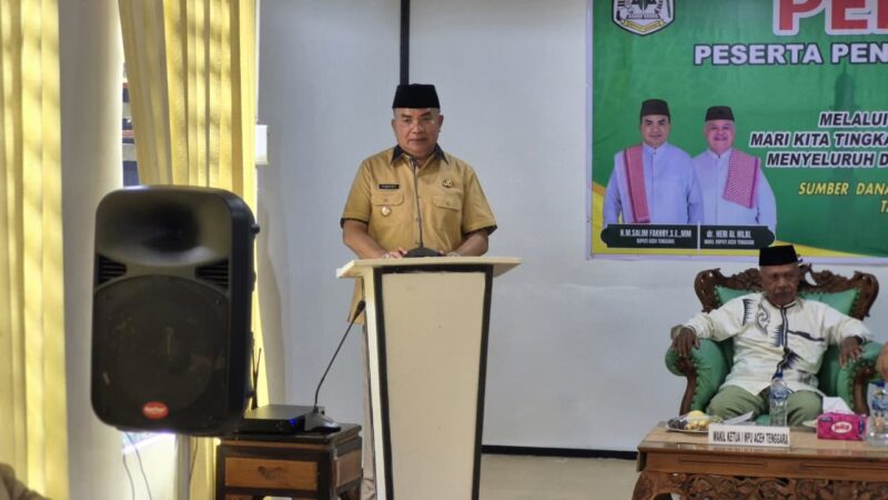 Aceh Tenggara — Komitmen Pemerintah Kabupaten Aceh Tenggara dalam memperkuat peran ulama dan memperdalam pemahaman agama di kalangan generasi muda kembali ditunjukkan melalui kegiatan Pelatihan Pendidikan Kader Ulama (PKU) yang resmi dibuka oleh Bupati Aceh Tenggara H.M. Salim Fakhry, SE, MM, pada Senin, 27 Oktober 2025, di Aula Hotel Sartika, Desa Mbarung, Kecamatan Babussalam.