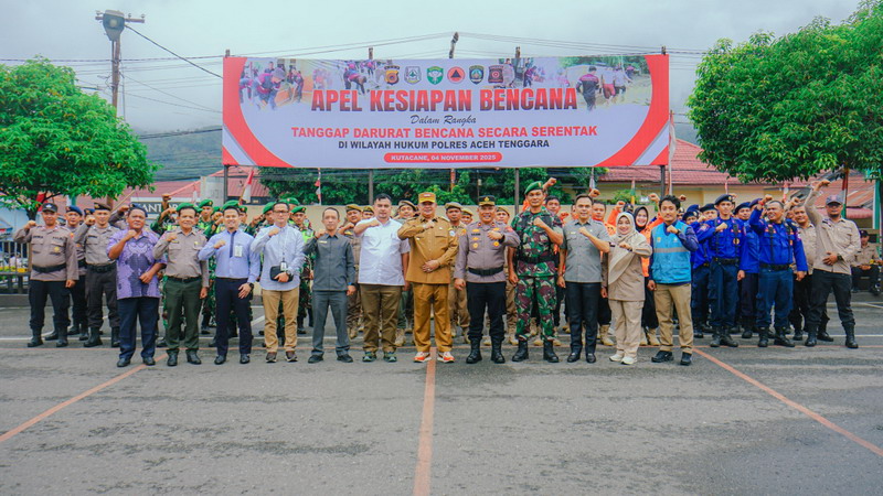 KUTACANE — Menghadapi tingginya potensi bencana alam di wilayah Aceh Tenggara, Bupati H. M. Salim Fakhry memimpin langsung Apel Kesiapsiagaan Bencana yang digelar di halaman Mapolres Aceh Tenggara, Selasa (4/11/2025). Kegiatan ini menjadi penanda kuat komitmen pemerintah daerah dalam mengantisipasi dampak bencana yang kerap melanda wilayah ini setiap tahun, seperti banjir bandang dan tanah longsor.