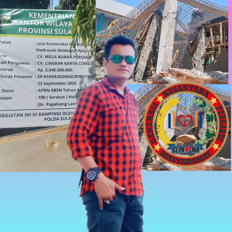Takalar – waspada Indonesia.com | Proyek pembangunan sarana Madrasah Ibtidaiyah Negeri (MIN) 2 Takalar yang didanai oleh APBN-SBSN tahun anggaran 2025 senilai Rp2.548.500.000, mengalami insiden ambruknya tiang-tiang penyangga pada tanggal 4 November 2025. Kejadian ini menimbulkan pertanyaan besar mengenai kualitas pekerjaan yang dilakukan oleh pelaksana proyek, CV Mega Buana Persada.