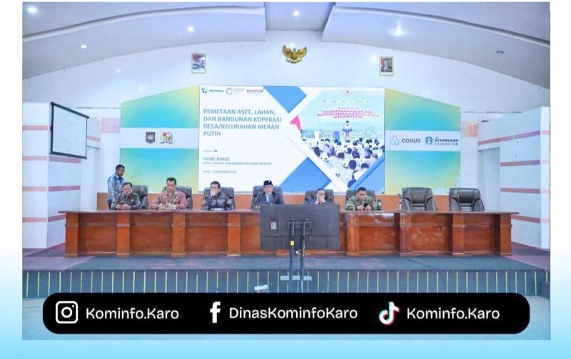 Bertempat di Aula Kantor Bupati Karo, Jalan Djamin Ginting, Kabanjahe. Jumat (7/11/25). Bupati Karo, Brigjen Pol (Purn) Dr. dr. Antonius Ginting, Sp.OG., M.Kes., menyatakan dukungan penuh terhadap percepatan pemetaan lahan, aset, dan bangunan Koperasi Desa/Kelurahan Merah Putih (KDKMP) di Kabupaten Karo.