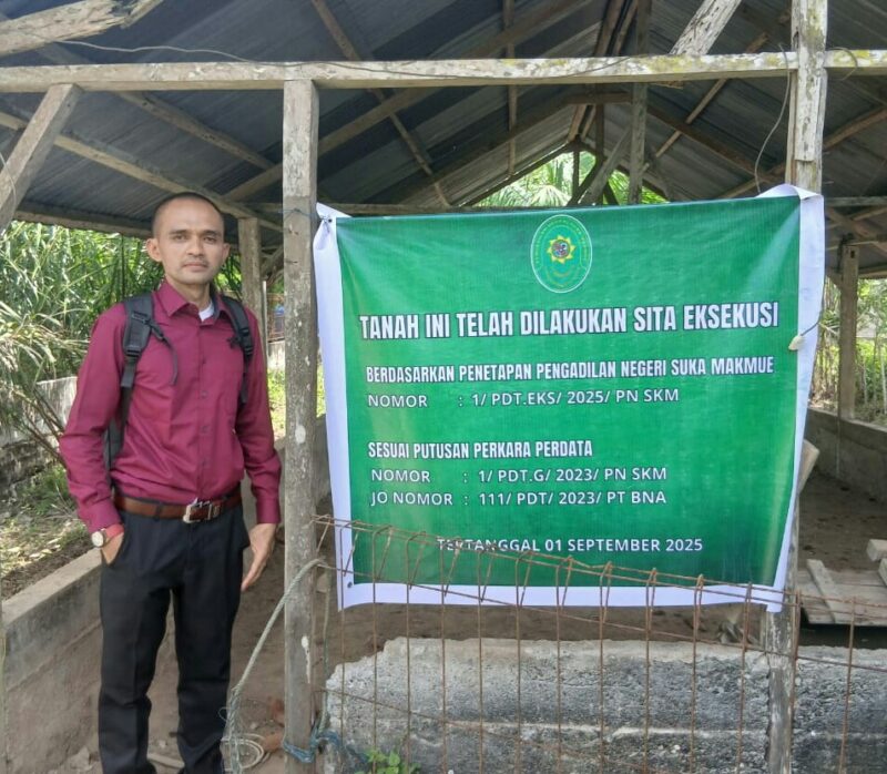 Ia menjelaskan, perkara ini berawal dari gugatan perdata yang dimenangkan oleh pihaknya M. Ali Hasyimi sebagai Penggugat di Pengadilan Negeri Suka Makmue dengan nomor perkara 1/Pdt.G/2023/PN SKM tertanggal 15 September 2023. Putusan tersebut kemudian diperkuat oleh Pengadilan Tinggi Banda Aceh melalui putusan Nomor 111/PDT/2023/PT BNA tertanggal 5 Desember 2023. Setelah putusan tersebut berkekuatan hukum tetap (inkracht), pihaknya mengajukan permohonan eksekusi kepada PN Suka Makmue.