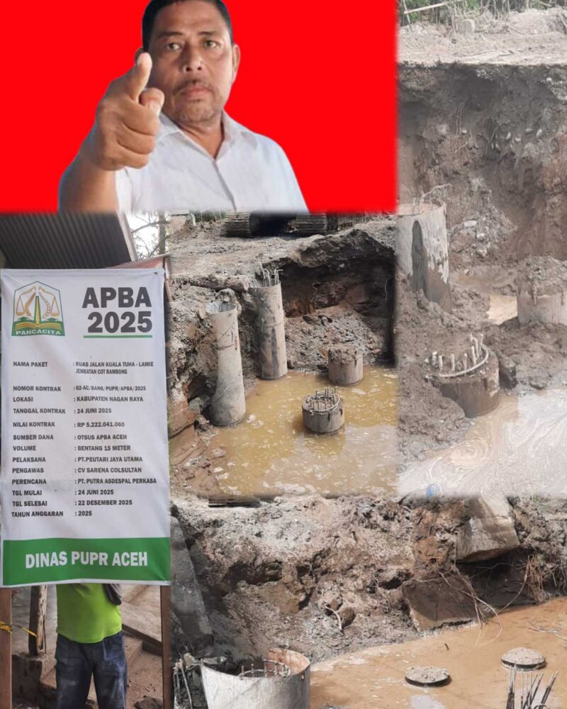 Nagan Raya – Anggota DPRK Nagan Raya dari Fraksi Partai PNA, Cut Man, kembali bersuara lantang terkait dugaan ketidaksesuaian pekerjaan pada proyek pembangunan jembatan Kuala Trang Cot Rambong, Kecamatan Kuala Pesisir, Kabupaten Nagan Raya.