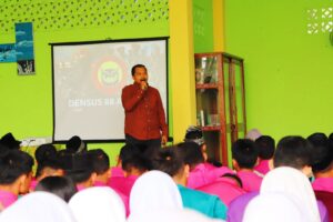 Personil Satgaswil Riau Densus 88 Anti Teror Polri, Briptu Riduan S.H., dan Bripda Daniel Leo Fransisco Sianturi, memberikan pemaparan tentang pencegahan IRET kepada pelajar.