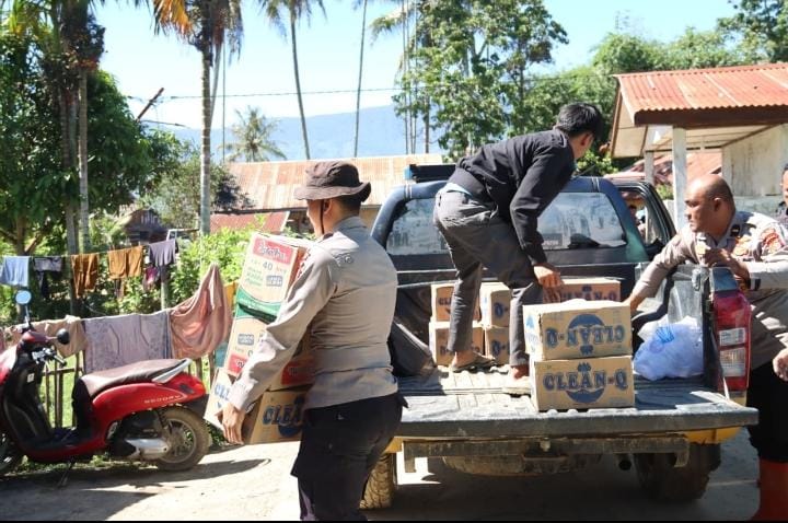 Blangkejeren, 29 November 2025 – Upaya tanggap darurat terus dilakukan jajaran Polres Gayo Lues untuk memastikan kondisi masyarakat terdampak banjir tetap mendapat perhatian. Pada Kamis (27/11), Kabagops Polres Gayo Lues Kompol Iskandar, S.Pd., M.Pd., bersama Kasatsamapta terjun langsung ke lokasi banjir di Desa Rerebe, Kecamatan Dabun Gelang, serta Desa Palok, Blangkejeren, guna menyerahkan bantuan sembako sekaligus melakukan pengecekan langsung terhadap kondisi warga.